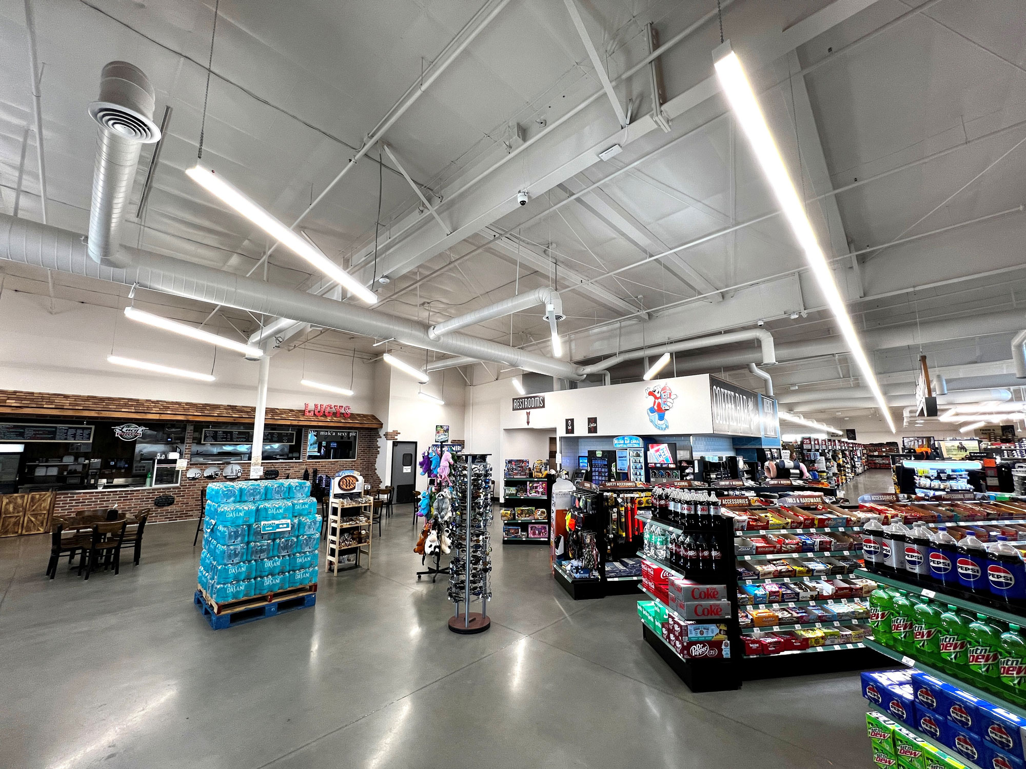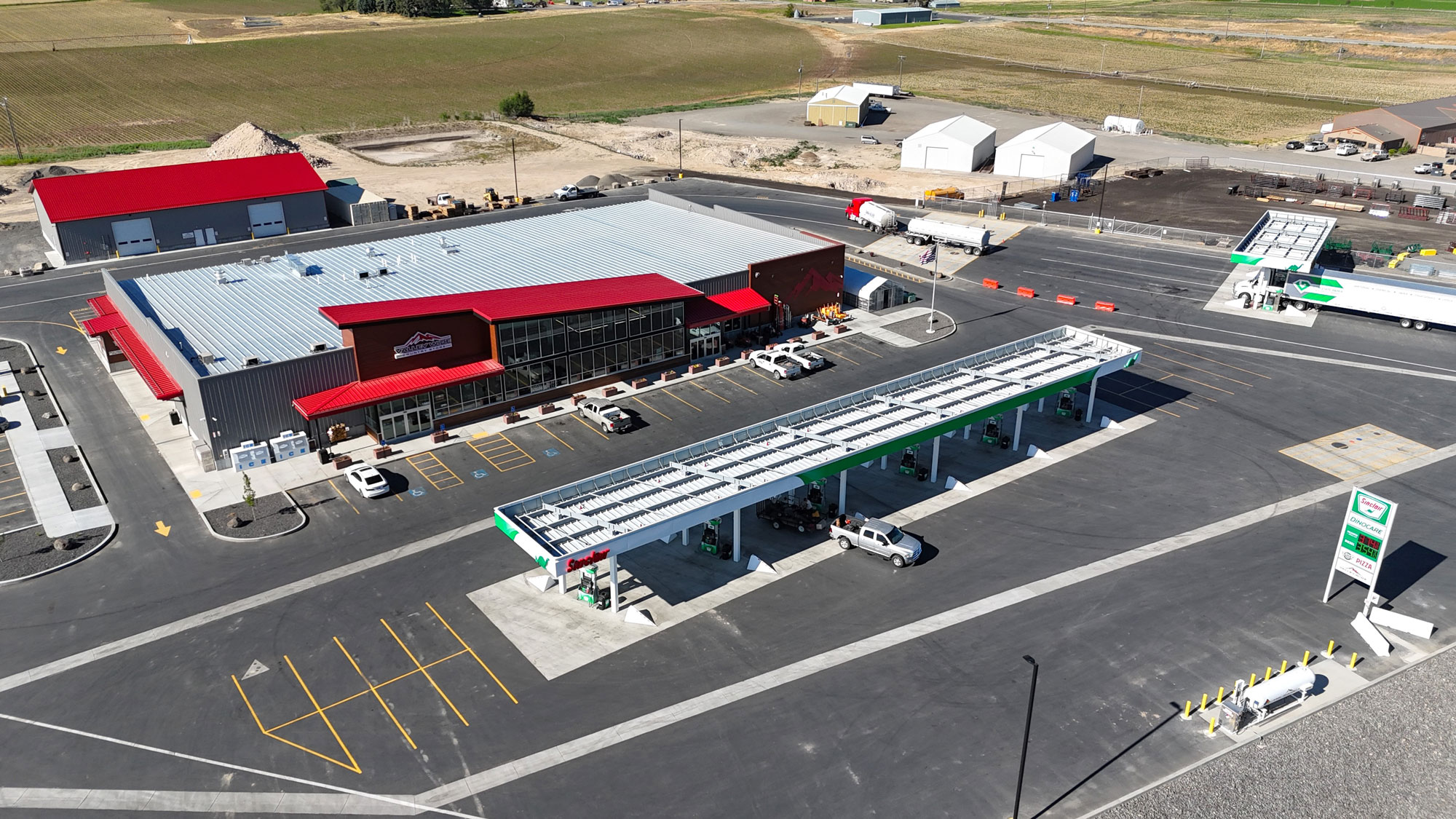 This Gas station and farm store has 2 canopies and an on-site shop. The facility has a 1000amp service, with 3 phase 208/120V. Enough energy to power the plaza as well as the pizza shop In the convenience store and the LVL 3 Charge point for Electric vehicles that stop at this location.